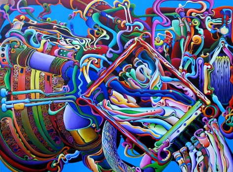 All 15 Paintings in this collection came from reclaimed canvases from a previous project. The characters came first, as I was enjoying creating these light-hearted beings. Then over some drinks, a few of my friends came up with the silly fart-related names. And eventually, I wrote little poems about each character. All of which became a self-published book – ‘A Big #2″ available from Blurb and I-tunes.