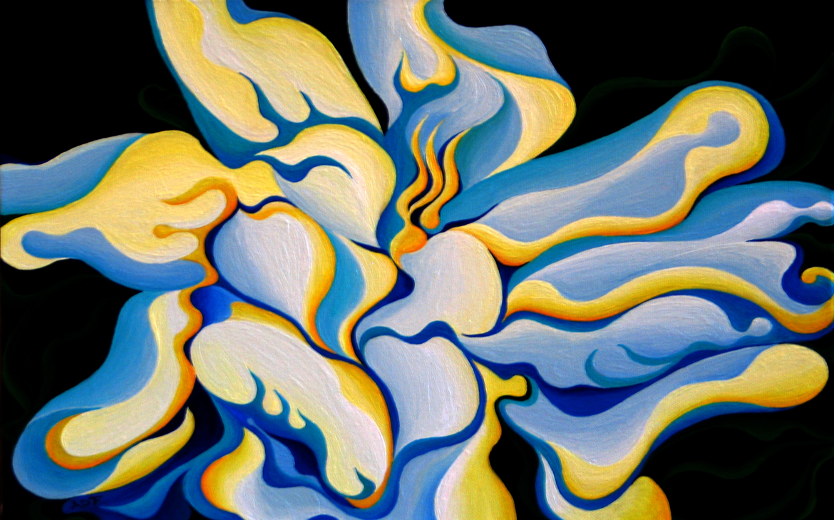 Despite her strong interest in art, she chose to pursue a degree in Product Design. Design School provided her with a rather unique and solid foundation for later pursuing a career in art, as University training stressed the fundamentals of design. In 1986, Ferrari graduated from North Carolina State University’s School of Design with a Bachelors in Product Design. The university education provided ample opportunities for doodling during countless lectures. This constant doodling was key in the development of her distinctive organic style, which has slowly evolved as she has strived to fully explore and exploit this unique curvilinear language. Within seven years of graduating from university, she was able to dedicate herself to art full-time. The remainder of Ferrari’s art education was self-taught through endless hours of drawing, painting, and nearly obsessive exploration.