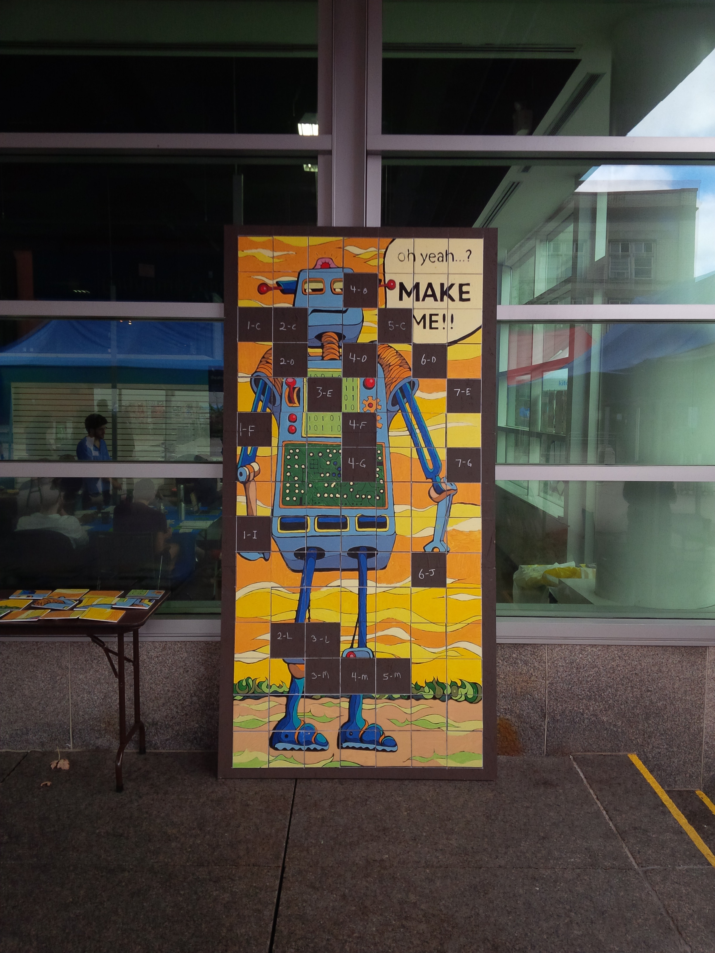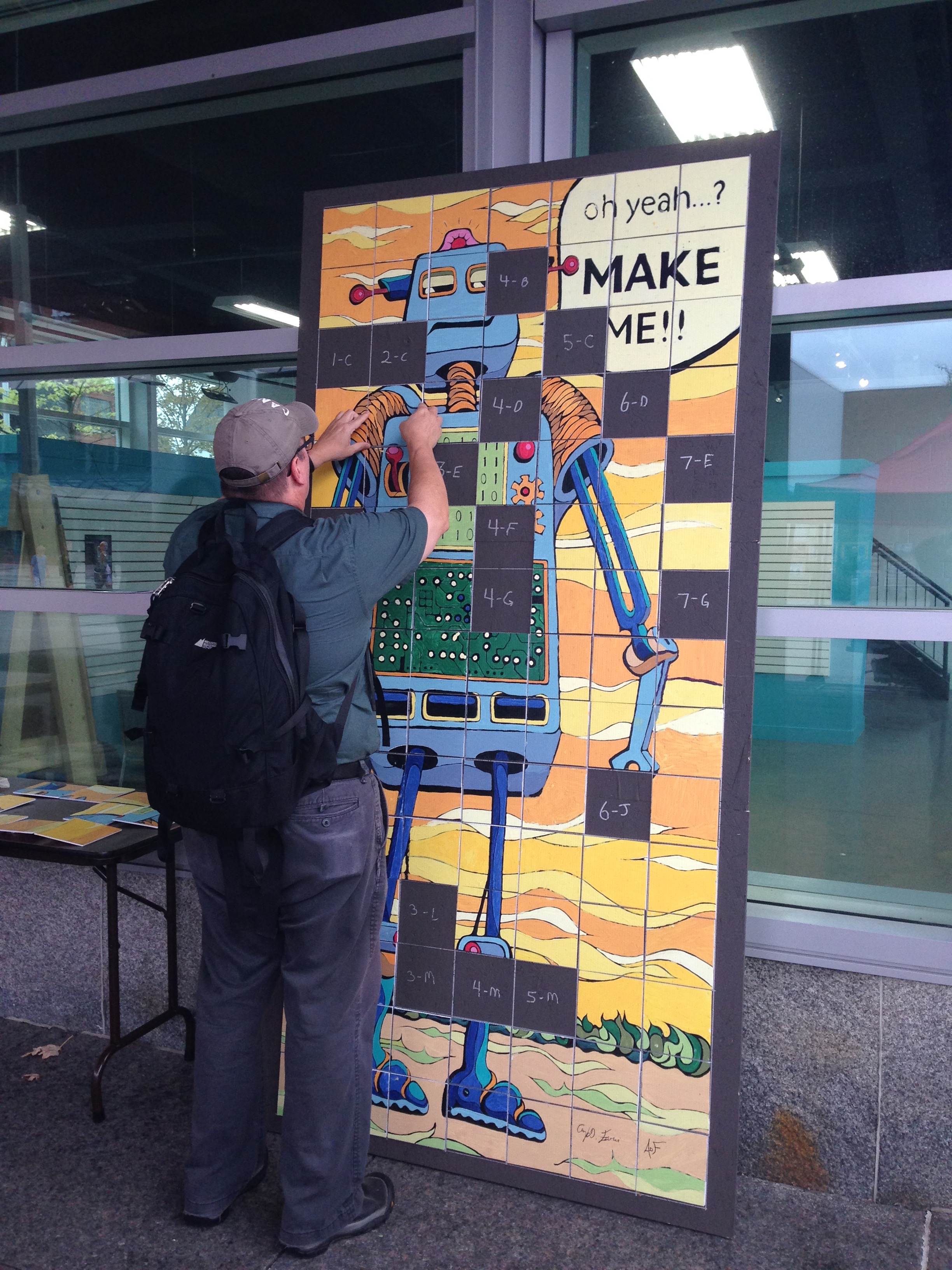 On September 19, 2015 at Kitchener City Hall I presided over another paint-by-number tiling project. This project was brought to you by KWARTZ Lab Maker Space, and was a small part of Waterloo Region’s 2015 Maker Expo.