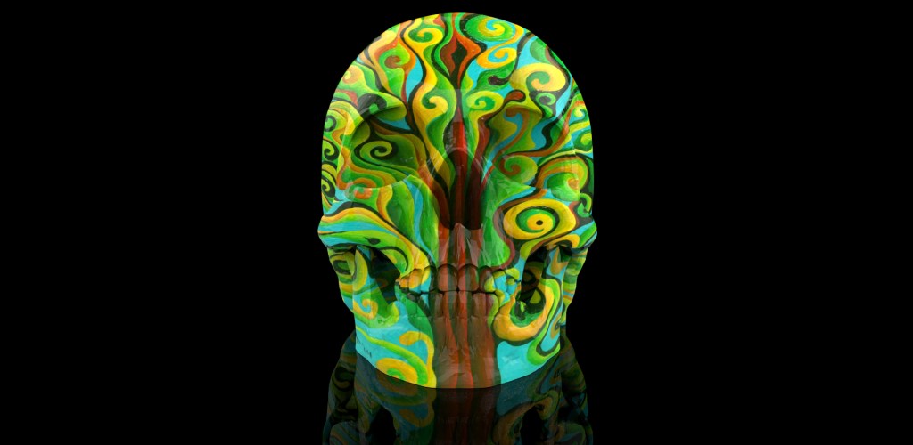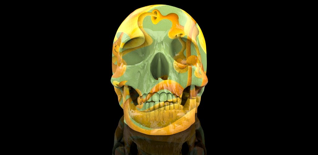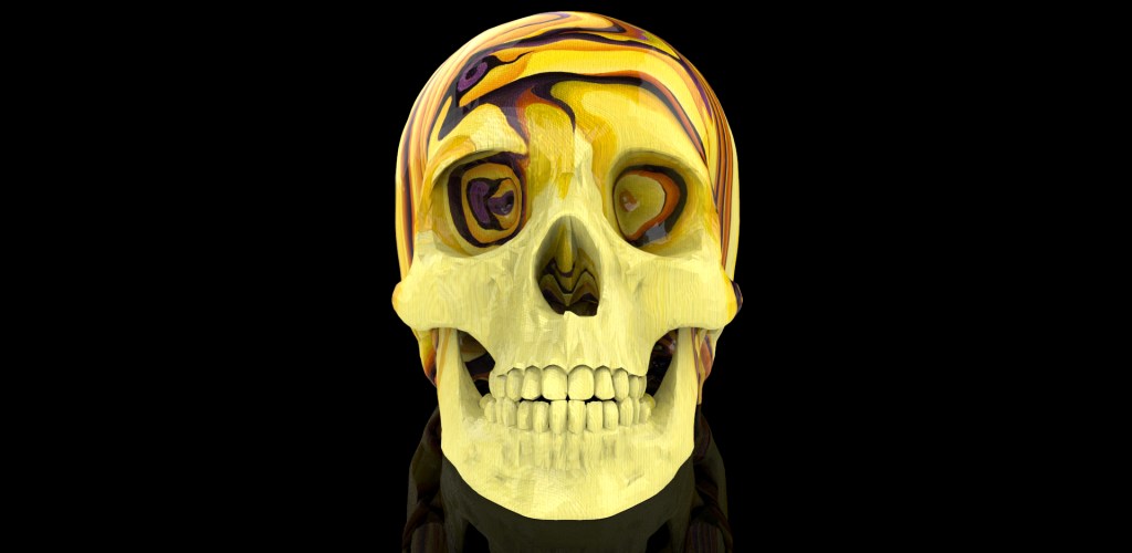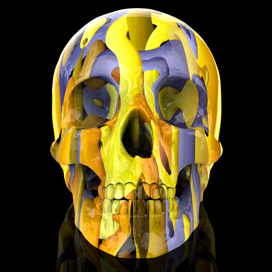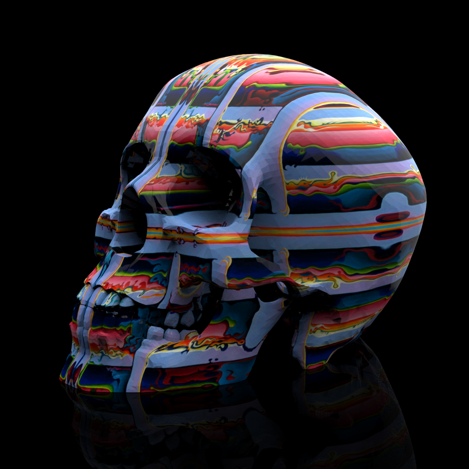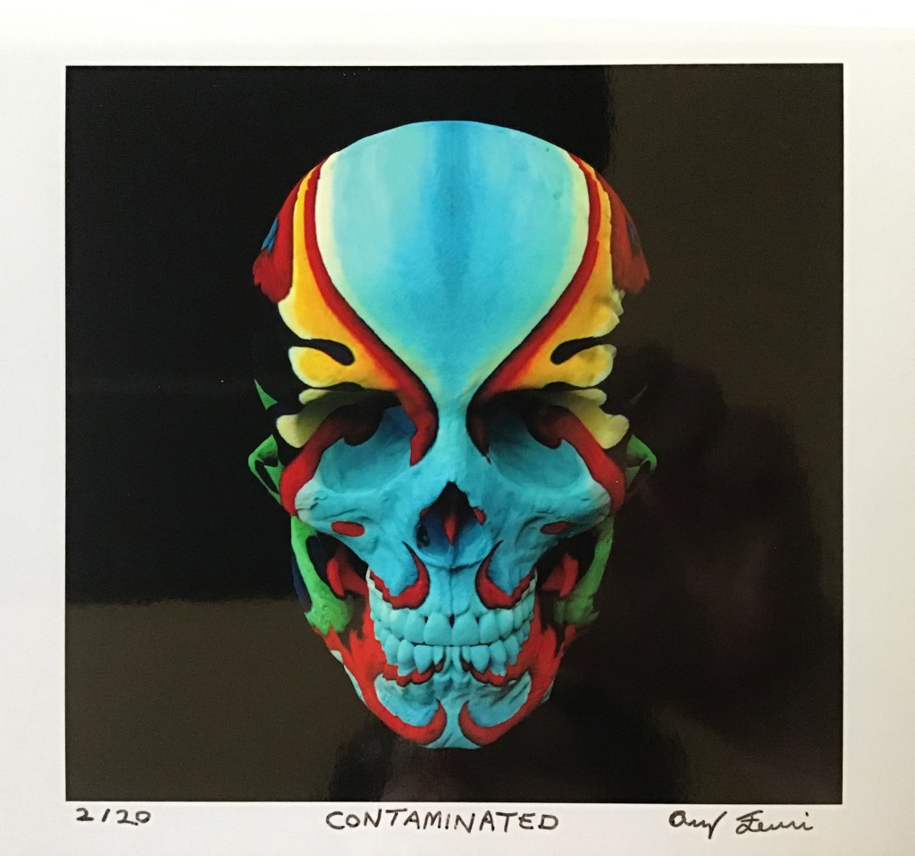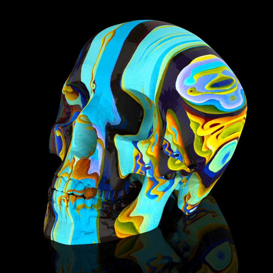 A selection of signed Limited-Edition prints featuring original images virtually wrapped upon virtual skull forms.