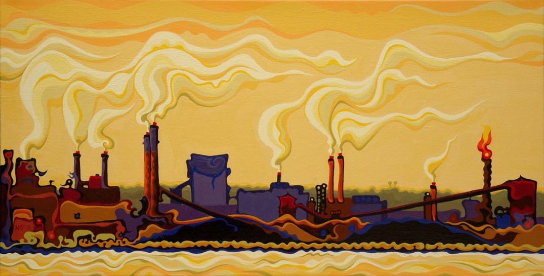The main piece is “Sudden Summer Awakening”, and is 36 x 48, acrylic on canvas.