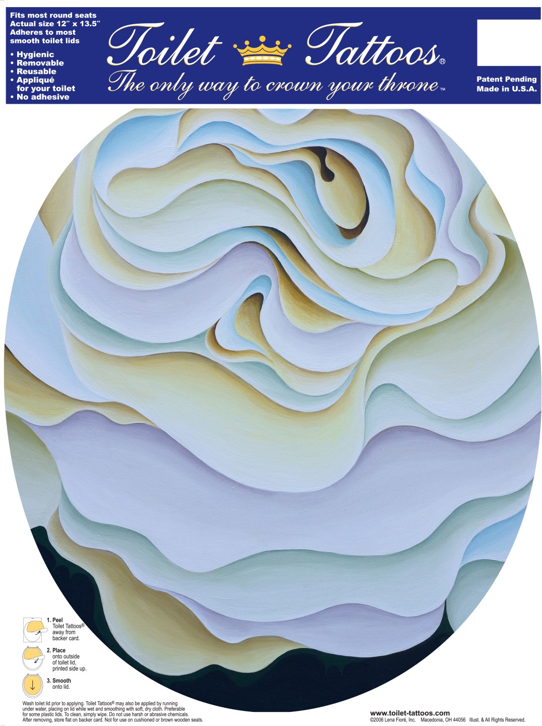 Toilet Tattoos® is a hygienic, removable appliqué for the toilet lid. Made from electrostatic vinyl film, this toilet seat decoration wipes clean and is reusable. In just 3 easy steps, peel, place and smooth, you can transform the look of your lid. Proudly made in the USA, this patent pending innovation is the modern way to enhance the toilet. A bathroom accessory that is quick, clean, simple and changeable. Toilet Tattoos are the only way to crown your throne™.